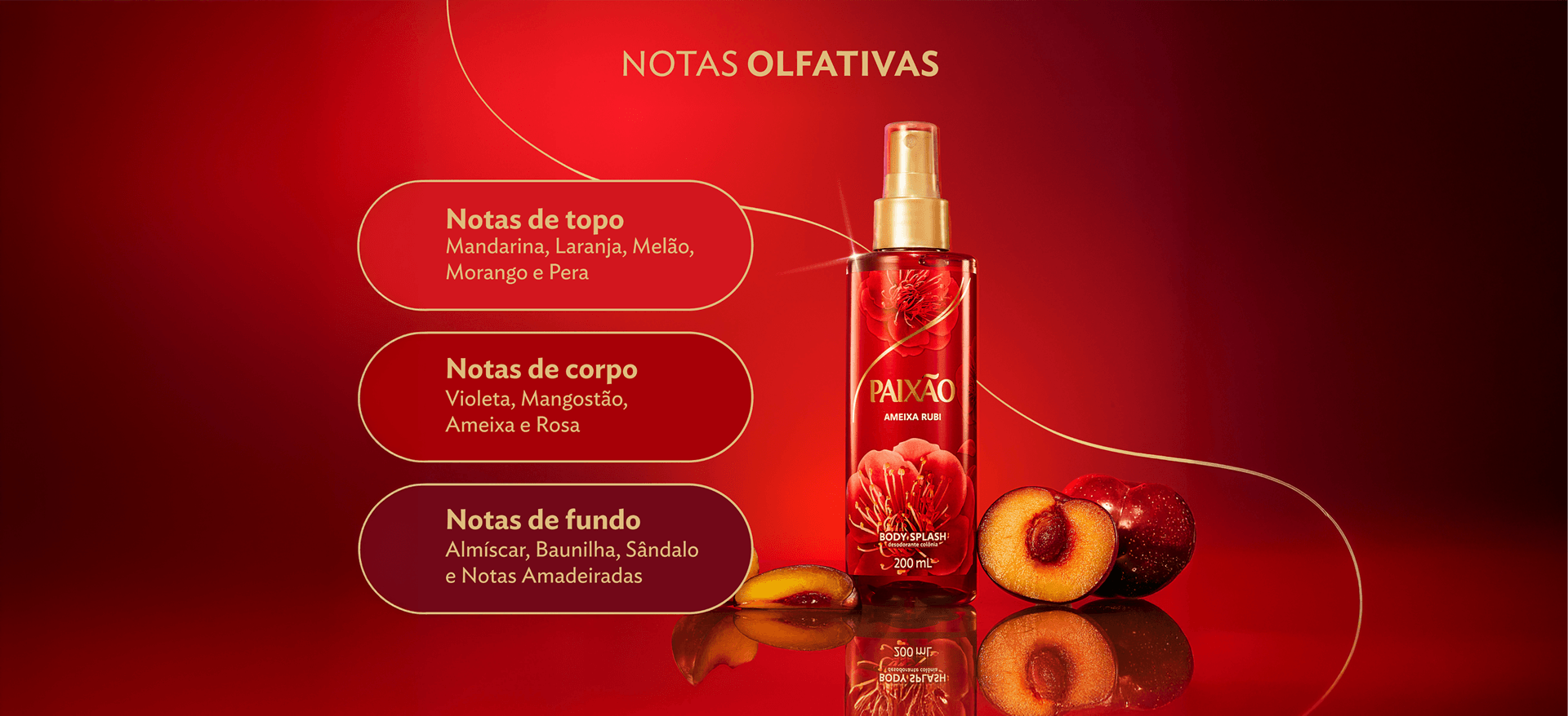 Desfrute da nova linha de Body Splash Paixão! Suas fragrâncias favoritas em um novo formato, perfeito para perfumar a qualquer momento.