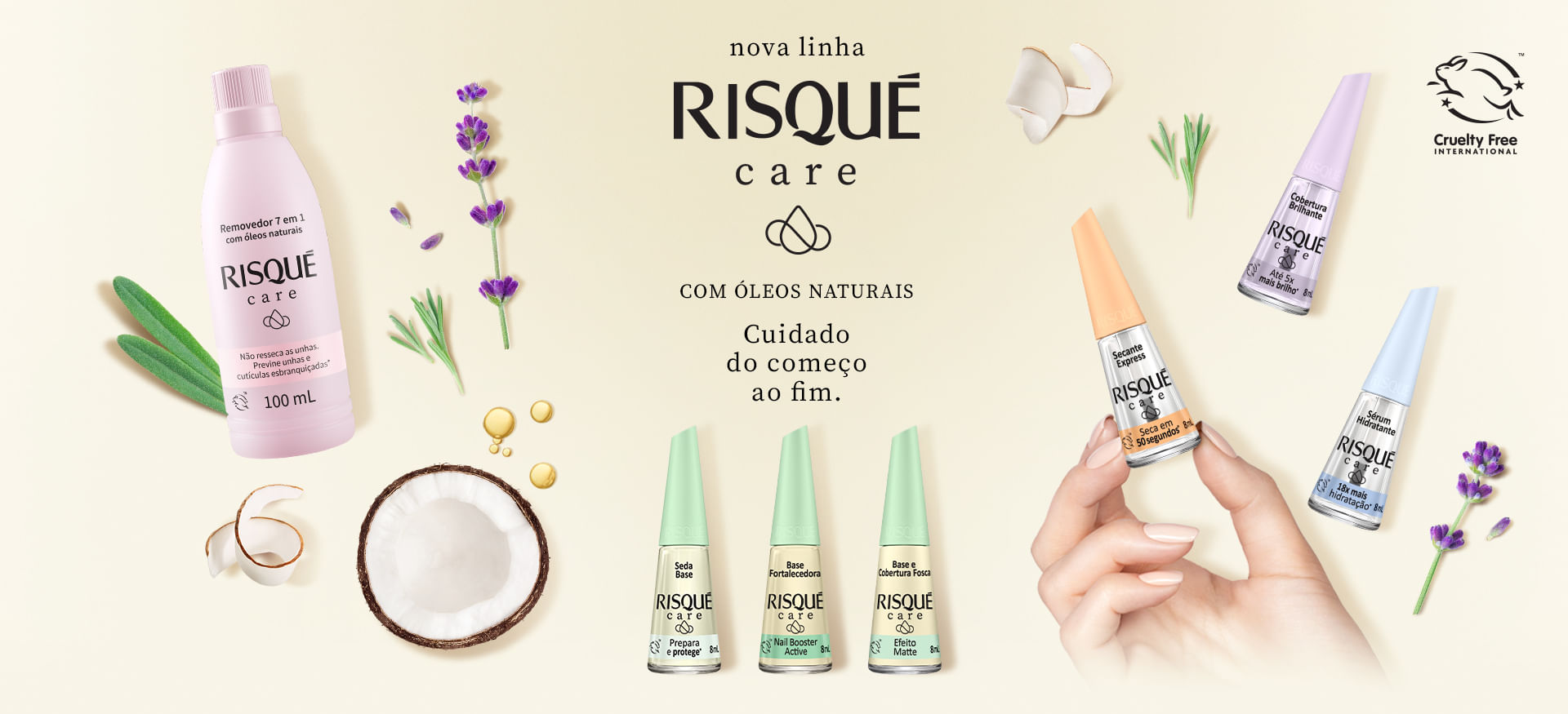 A nova linha Risqué Care cuida das suas unhas do começo ao fim, com uma linha completa para um cronograma de cuidados antes, durante e depois da esmaltação.
